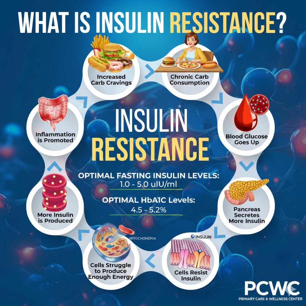 Understanding insulin resistance is the first step towards taking control of your health. If you're concerned about your risk or want to learn more, schedule a consultation with us at PCWC. We're here to guide you on your journey to optimal health!